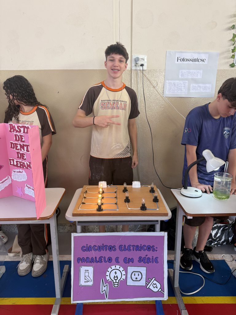 Durante o evento, os estudantes apresentaram experimentos, pesquisas e projetos construídos ao longo do período letivo, explorando temas atuais e relevantes para a sociedade. Cada grupo demonstrou empenho, curiosidade e responsabilidade ao desenvolver suas propostas, unindo teoria e prática de maneira envolvente.